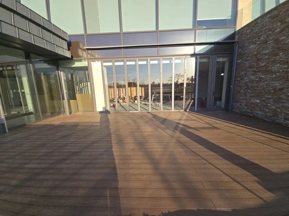 유지 관리가 편한 합성목재 데크. 색상 변화가 거의 없어 오래 쓸 수 있습니다.